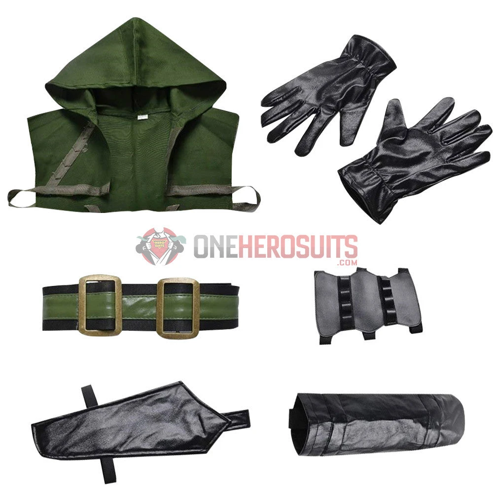 Full Set Includes: Tops, hats, pants, gloves, arrow sac, arm guards, shoe covers, leg bands